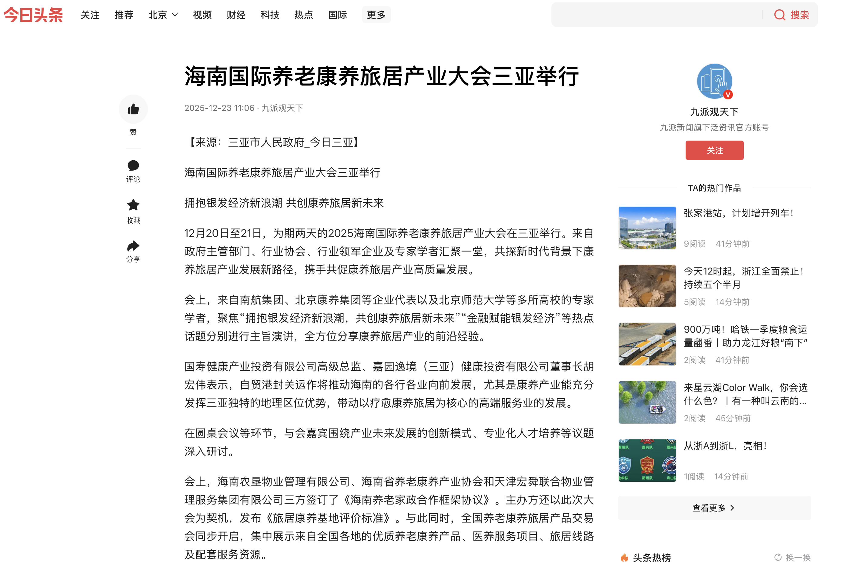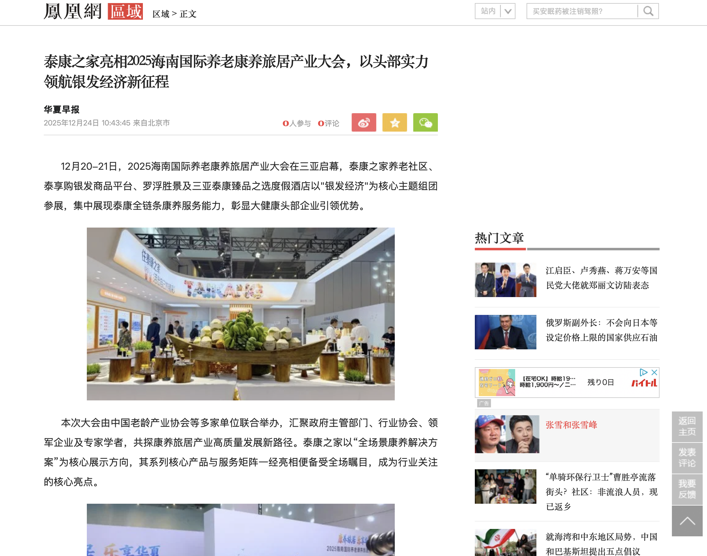 本大会は、政府機関、業界団体、先進企業、研究機関が一堂に会し、急速に拡大する“銀髪経済(シルバー経済)”を背景に、康養・医療・旅居を融合した新たな産業モデルについて議論する国際的な場です。
